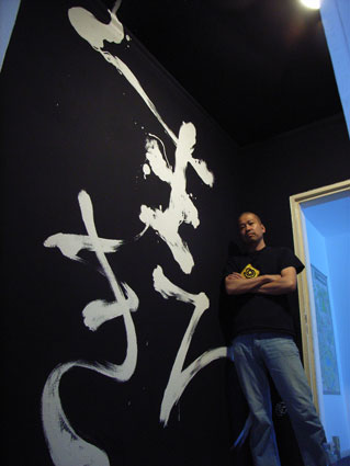 Takahiro paints IKIRO. He uses Acrylic or Japanese Ink or Soil to paint. He thinks he was inspired by Jackson Pollock, more than Japanese calligraphy. Takahiro made many kinds of paintings before he started IKIRO Project. You can see some photos of the paintings on this website. You can also see the photos of his recent concrete paintings on this website.
